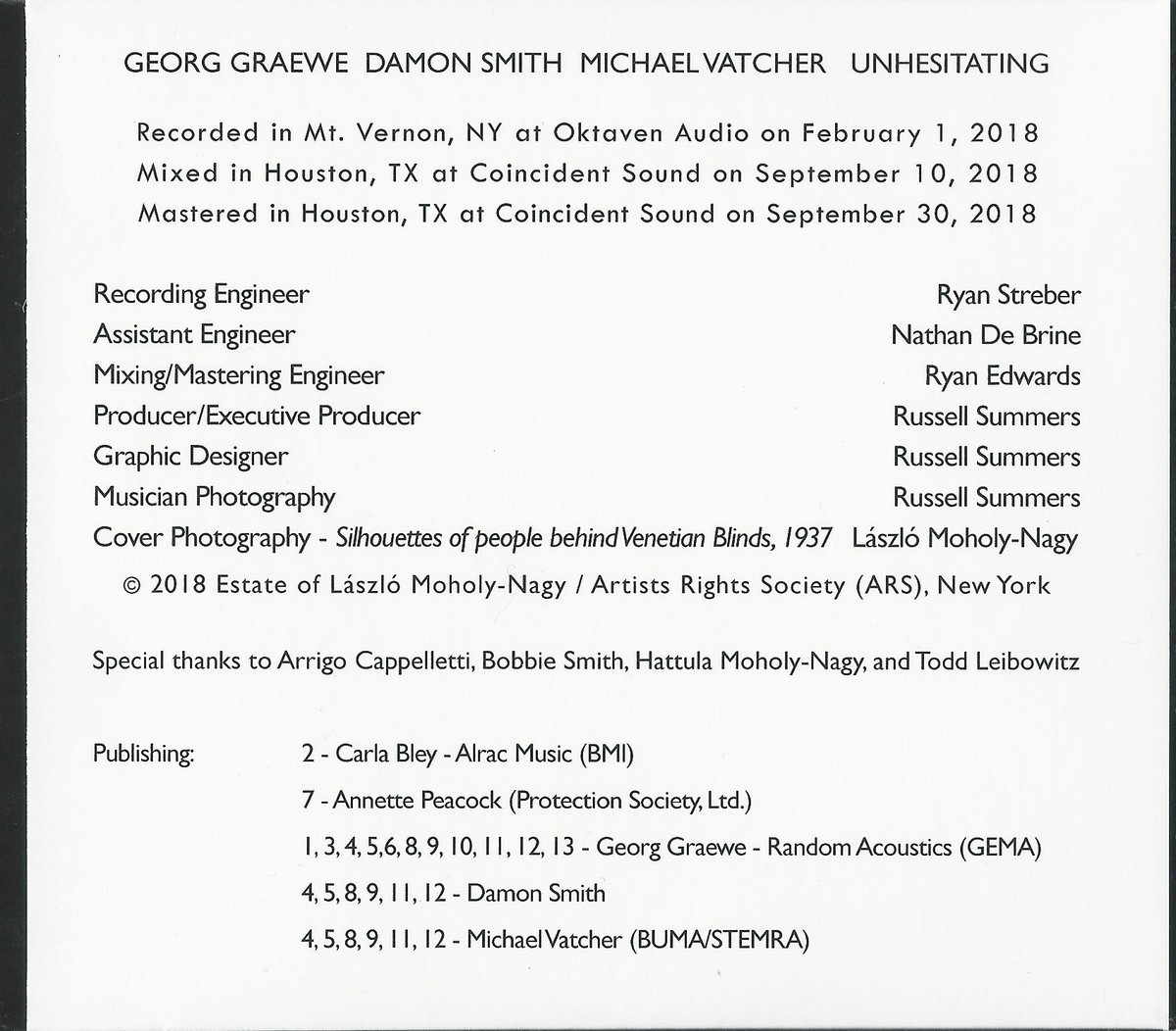 Total mastery of patience, time, and drama create a constantly engaging journey that never gets tiresome or same-y: in fact the harder you listen the better it gets! Somehow Sorey et al. find a way to combine the deep listening and spontaneous interaction of the best jazz with the sense of every tone and sound being worth a universe of listening, which could be equally from Cage and Feldman or the accompaniment to an ancient ritual.